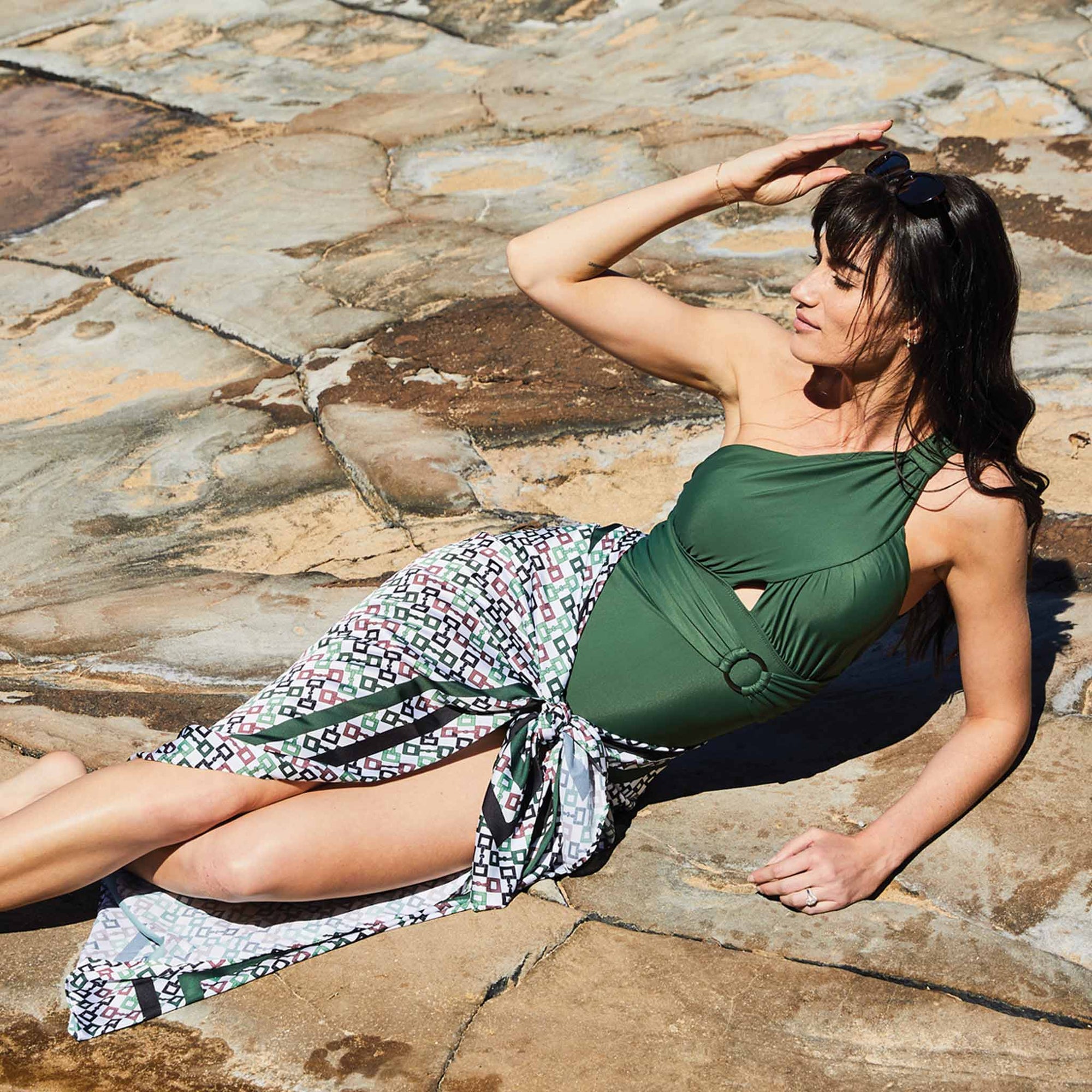 Discover this one shoulder design swimsuit, that is perfect for the coming season. Made from a luxurious and sustainable Italian Lycra, it will flatter you like no swimwear has done before. Dive into the world feeling fantastic in Angelica one piece in a lovely green colour!
