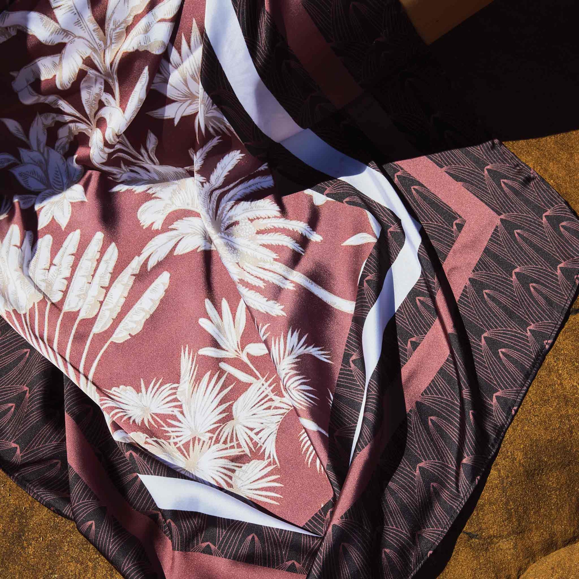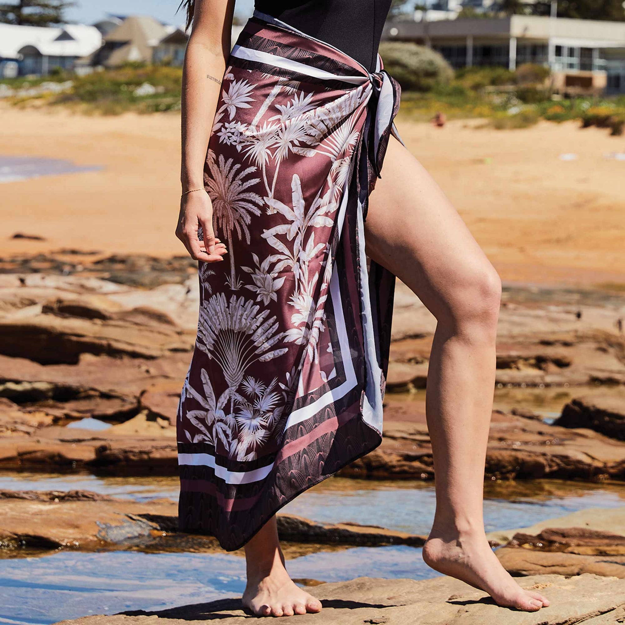 The Robyn sarong palms print is a delicate and light weight sarong that works perfectly with our all our black one pieces and Luna swimsuit bicolour. Our sarongs are designed to fit everyone. They’re extra long and wide, so you can fold and tie them anyway that suits you.